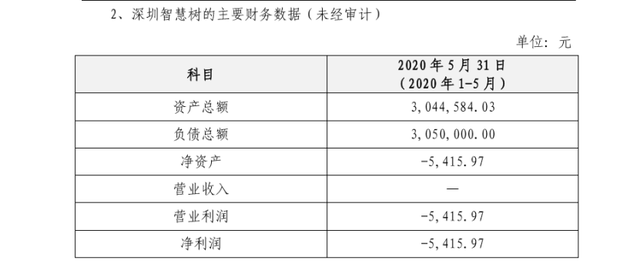 在公告中,尊时凯龙·(中国区)官方网站科技披露了深圳智慧树的主要财务数据(未经审计),如下图所示。